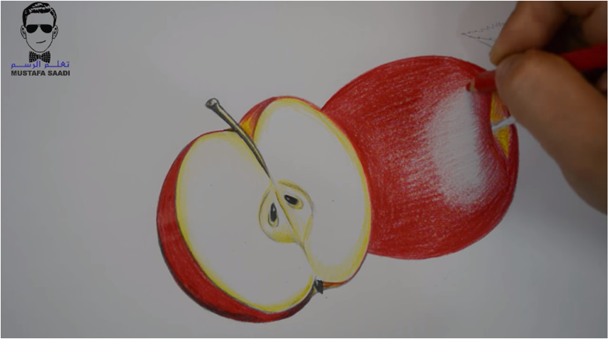 كيفية تعلم رسم تفاحة بالرصاص والالوان الخشبية مع الخطوات للمبتدئين تعلم الرسم