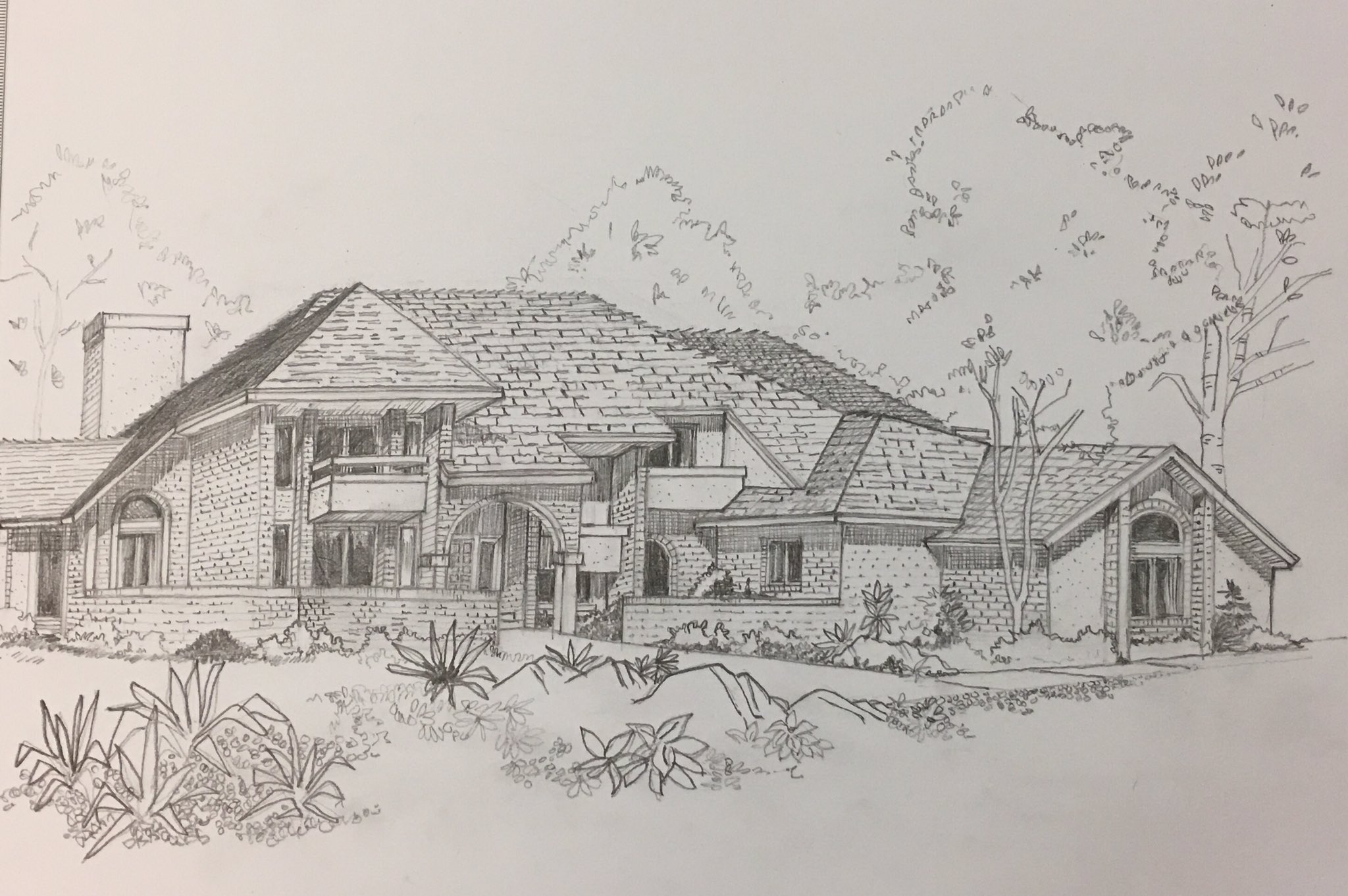 منظور يدوی مرسوم بالرصاص لواجهة فيلا كورسات ديكور و تصميم داخلى الشاملة و تصميم الأثاث فيسبوك