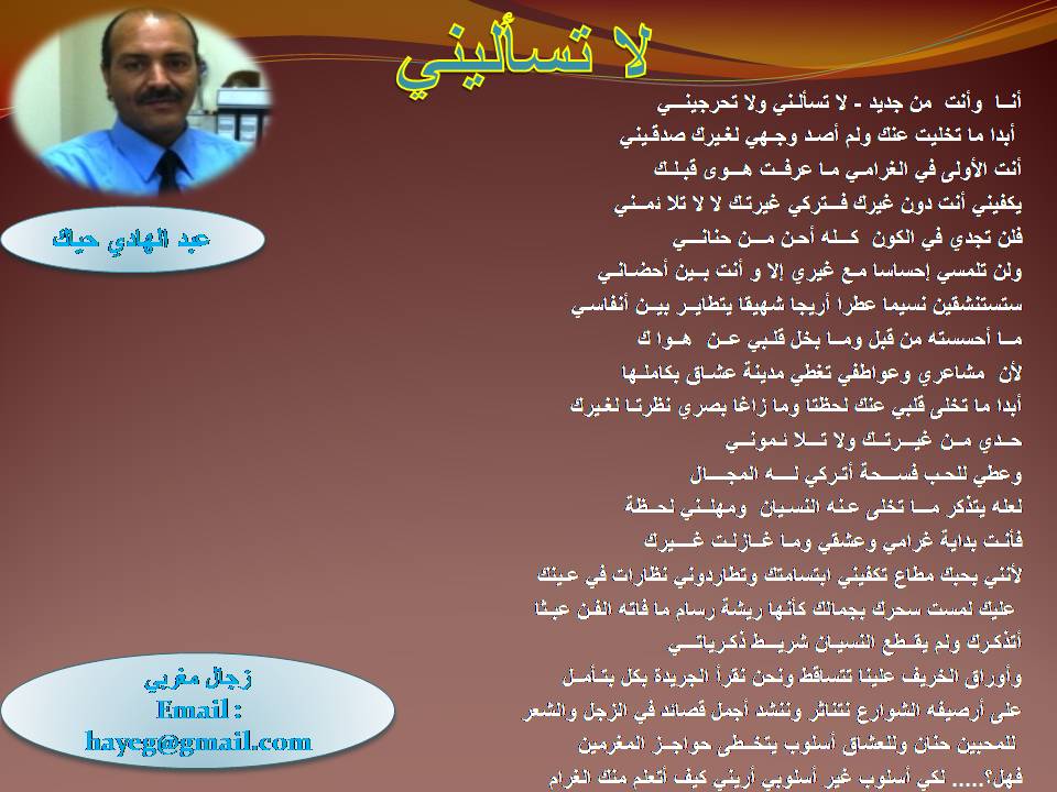 روائع الزجل المغربي المعاصر لشاعر المغربي عبدالهادي حياك الزجل المغربي في الحب