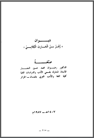 ديوان زفر بن الحارث الكلابي صنعة رضوان محمد حسين النجار